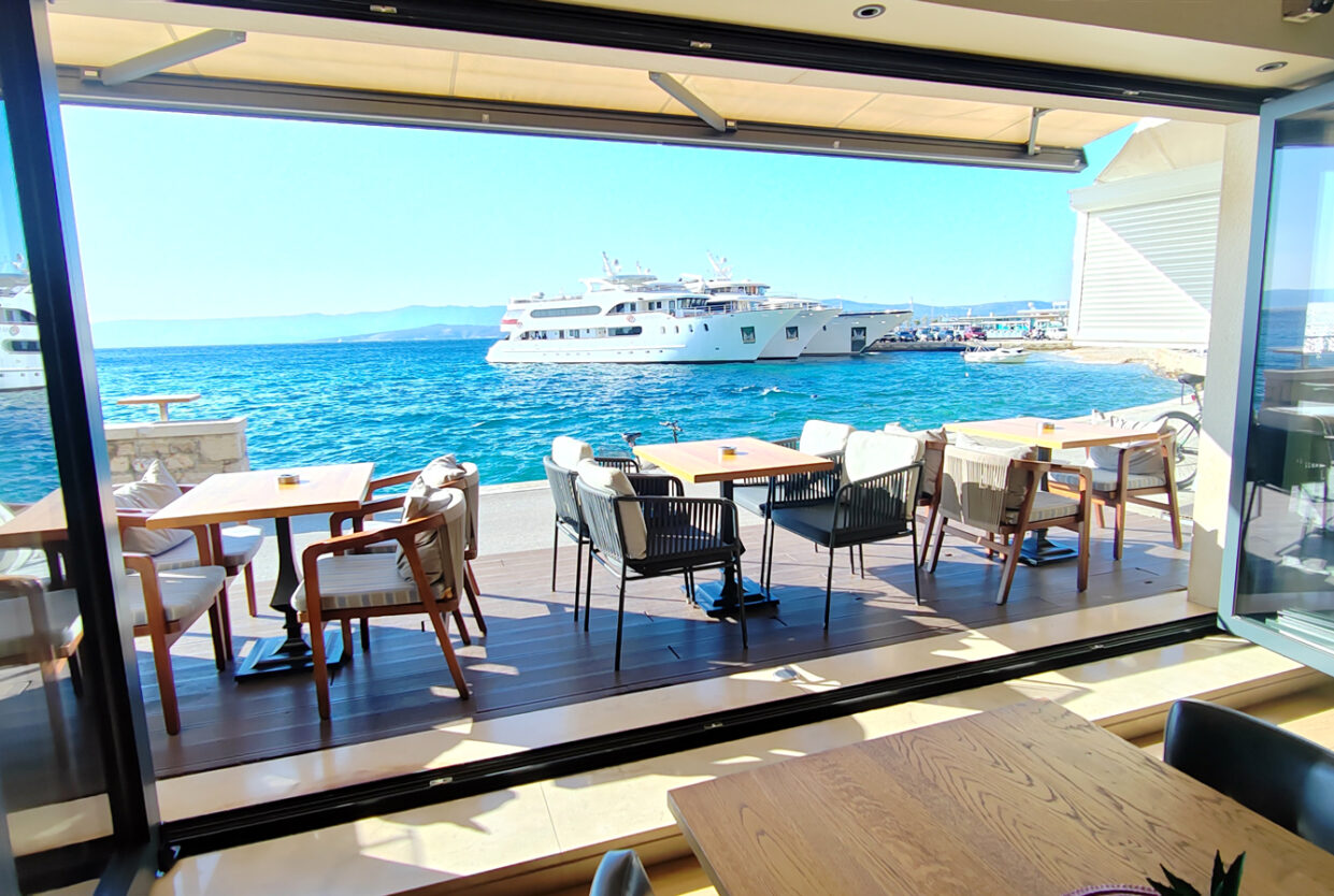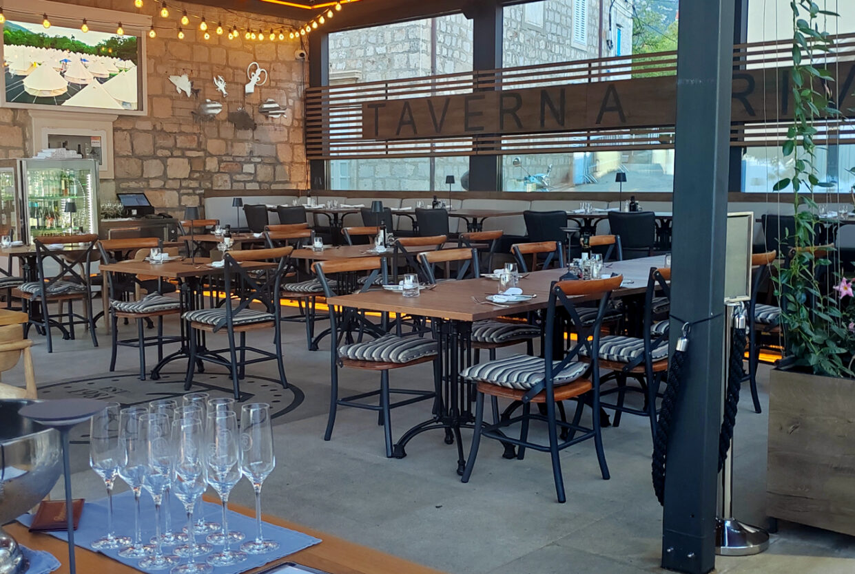 The restaurant with the longest tradition and a distinctive cuisine is located right in the center, on the Bol waterfront. On the ground floor, there is a bistro/café bar with a seaside terrace and moorings for nautical guests. The upper floor houses the restaurant with its kitchen and grill fireplace. There is also a terrace that opens during the tourist season, offering a beautiful view of the entire Bol harbor and the island of Hvar. Our restaurant is open throughout the summer season.